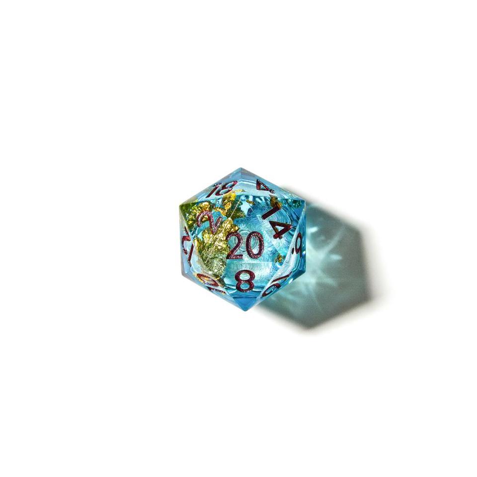 • Sparkling Mica Core: The mica flakes suspended in the liquid core shimmer with every roll, echoing the dynamic and unpredictable nature of magic within the DnD universe.