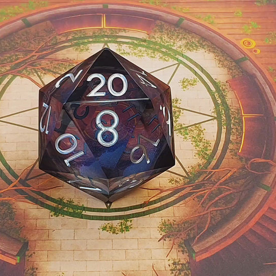 The sharp-edged design of the Liquid Core Oversized D20 Chonk not only ensures fair and consistent rolling but also highlights the beautiful, dynamic interior. As you roll, the liquid core comes alive, the sparkling mica or reflective flakes dancing within the die, creating a mesmerizing effect that mirrors the unpredictable nature of magic in the DnD world.