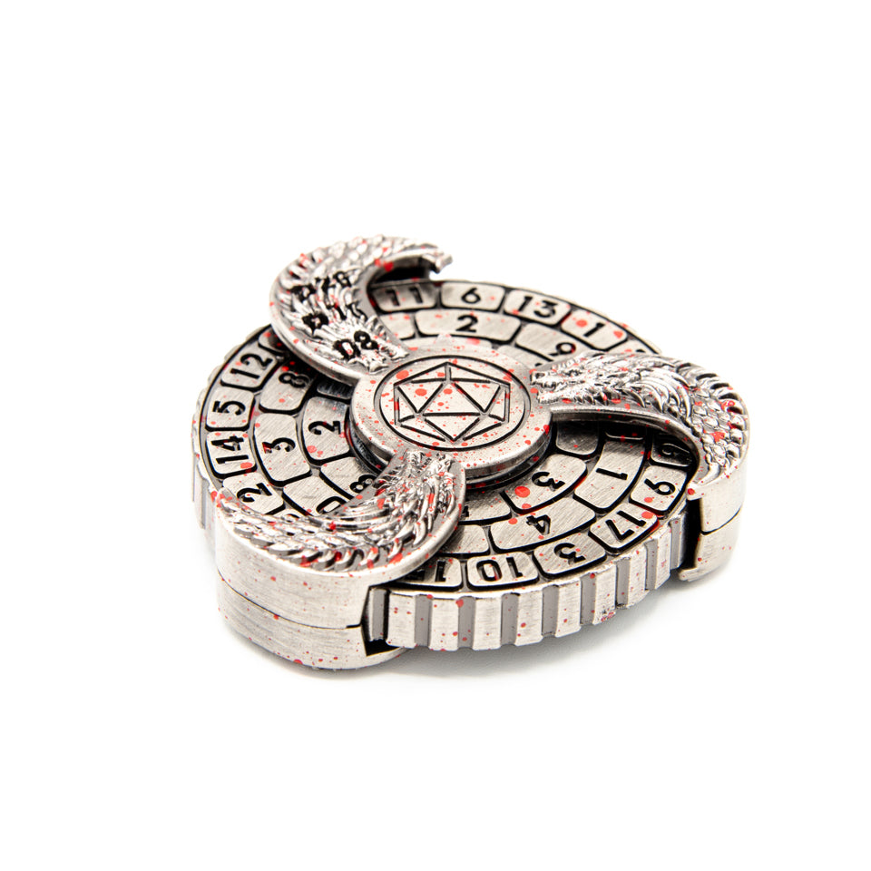 Choose from four distinct styles to match your gaming aesthetic: Glossy Black with Red numbers, Glossy Black with Blue numbers, Ancient Gold with Black numbers, and Ancient Silver with Black numbers featuring a Blood Spatter effect. Each spinner comes securely packaged in a sturdy box, ensuring it reaches you in perfect condition and ready for gameplay.