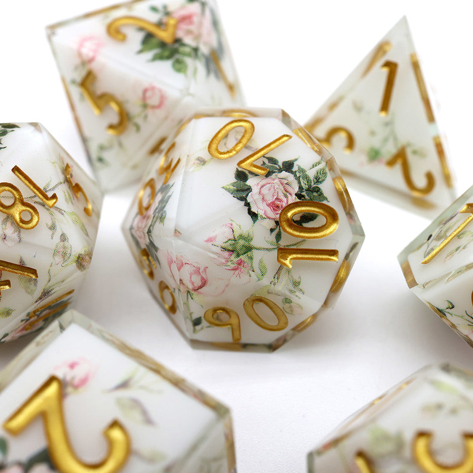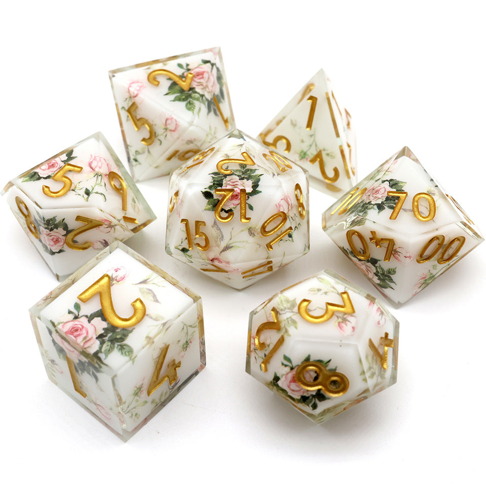Every Art Core Sharp Edge dice set is meticulously handmade, ensuring that each piece is unique and of the highest quality. The sharp edges guarantee fair rolls, while the beautifully detailed core designs—ranging from vibrant flora to enchanting fauna—add an element of artistry to your gameplay. These dice are a perfect blend of form and function, designed to captivate both players and collectors alike.