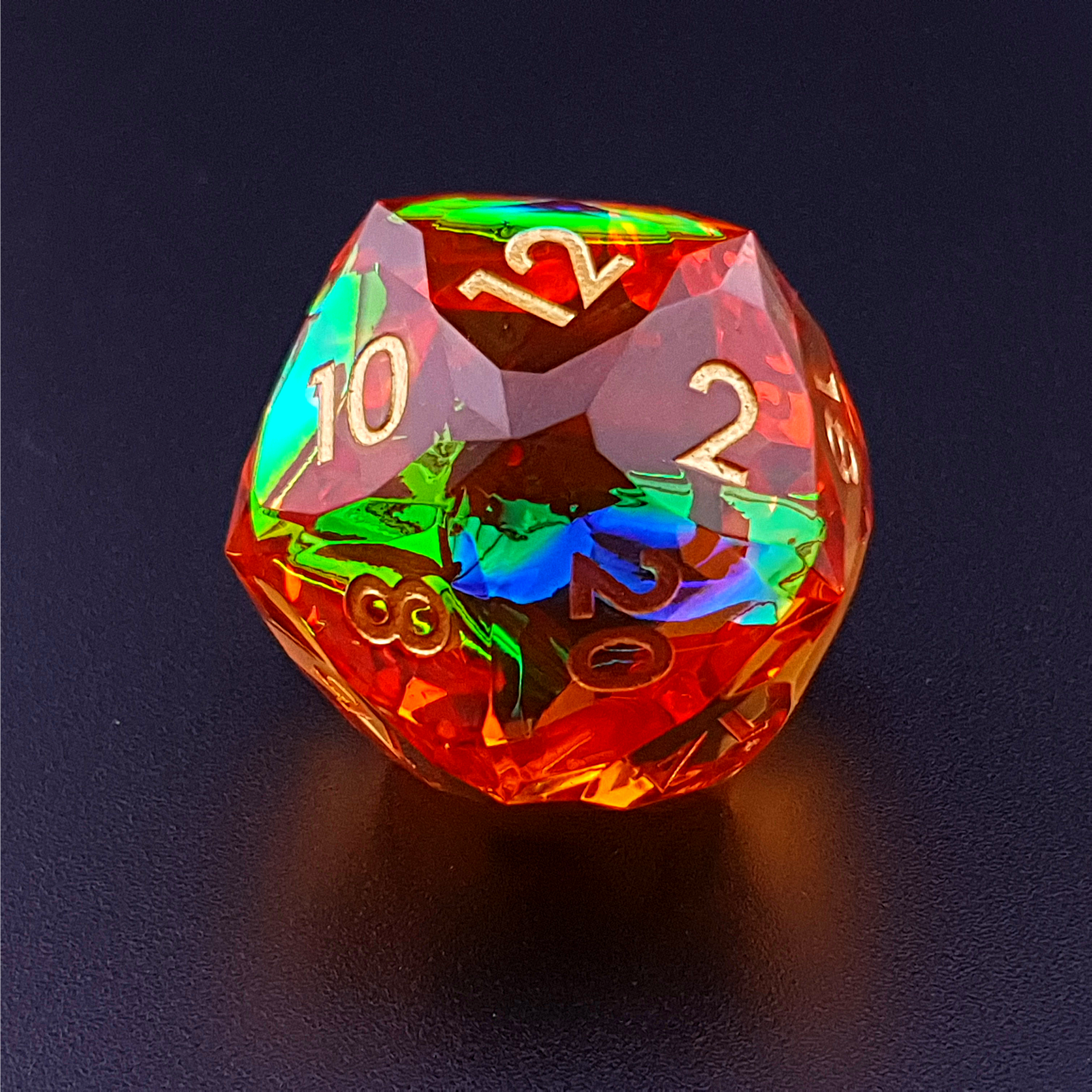 Roll with style and confidence. The Molten Prism diamond cut D20 is more than a die – it is a gemstone for your adventures.