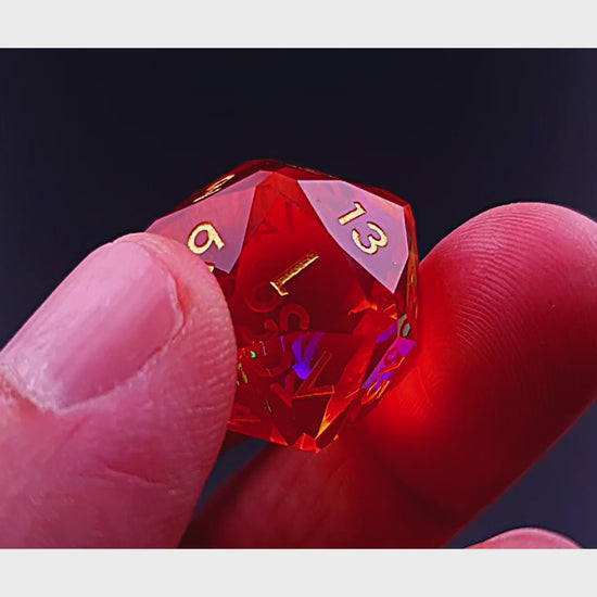 Each die is shaped with a diamond cut finish, reflecting light with striking clarity. The faceted edges catch every flicker of candlelight or LED glow, creating a mesmerising effect as you roll for glory.