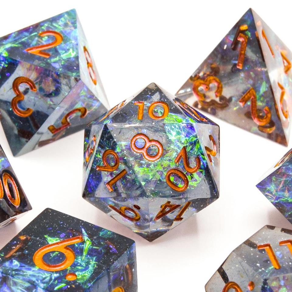 Cosmic Veil | Sharp Edge Dice | 7 Piece Set