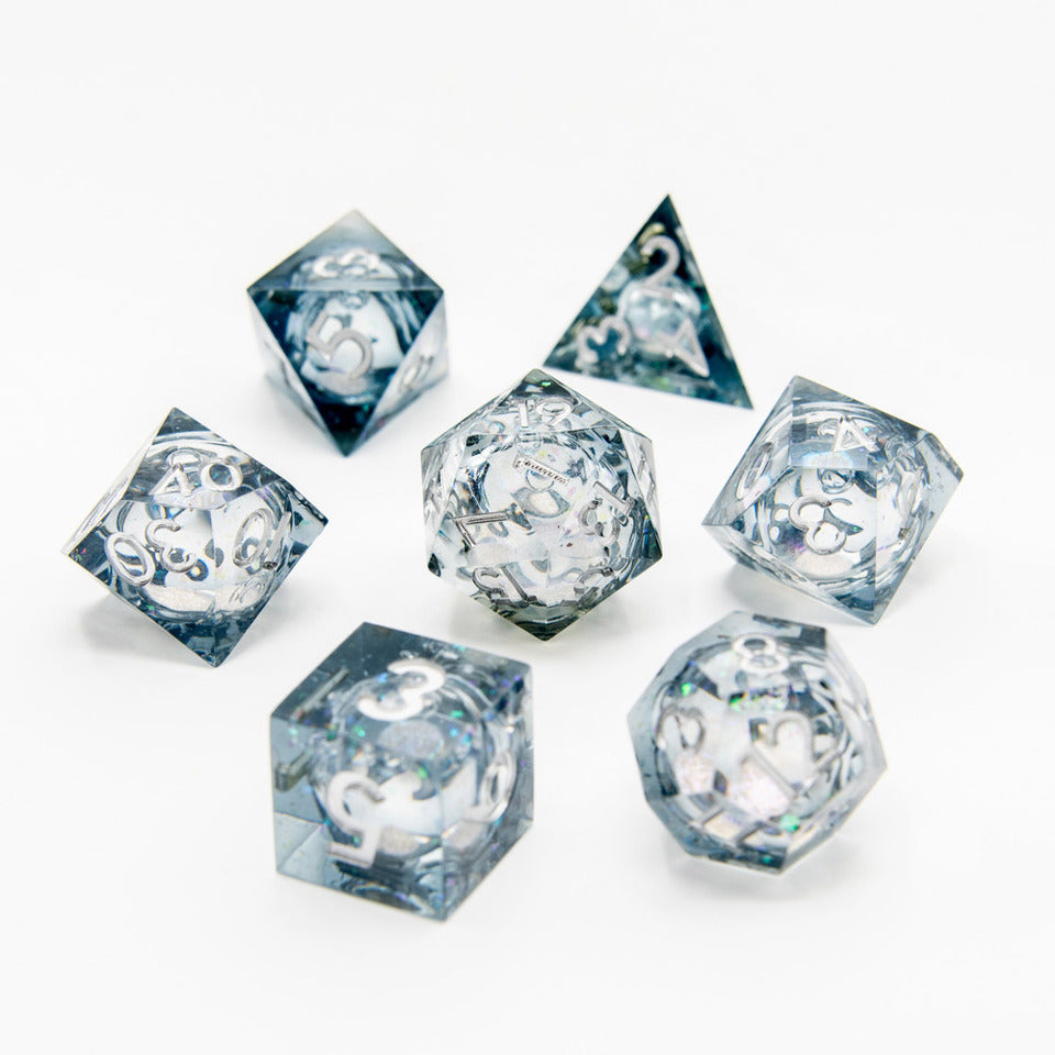 Embark on magical adventures with the Liquid Core Sharp Edged 7 Piece Set, where each roll brings a touch of spectacle and precision to your Dungeons and Dragons gameplay.