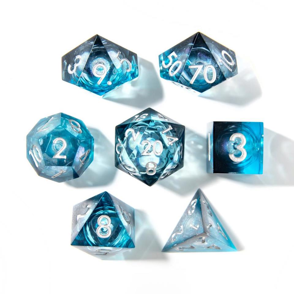 Embark on magical adventures with the Liquid Core Sharp Edged 7 Piece Set, where each roll brings a touch of spectacle and precision to your Dungeons and Dragons gameplay.